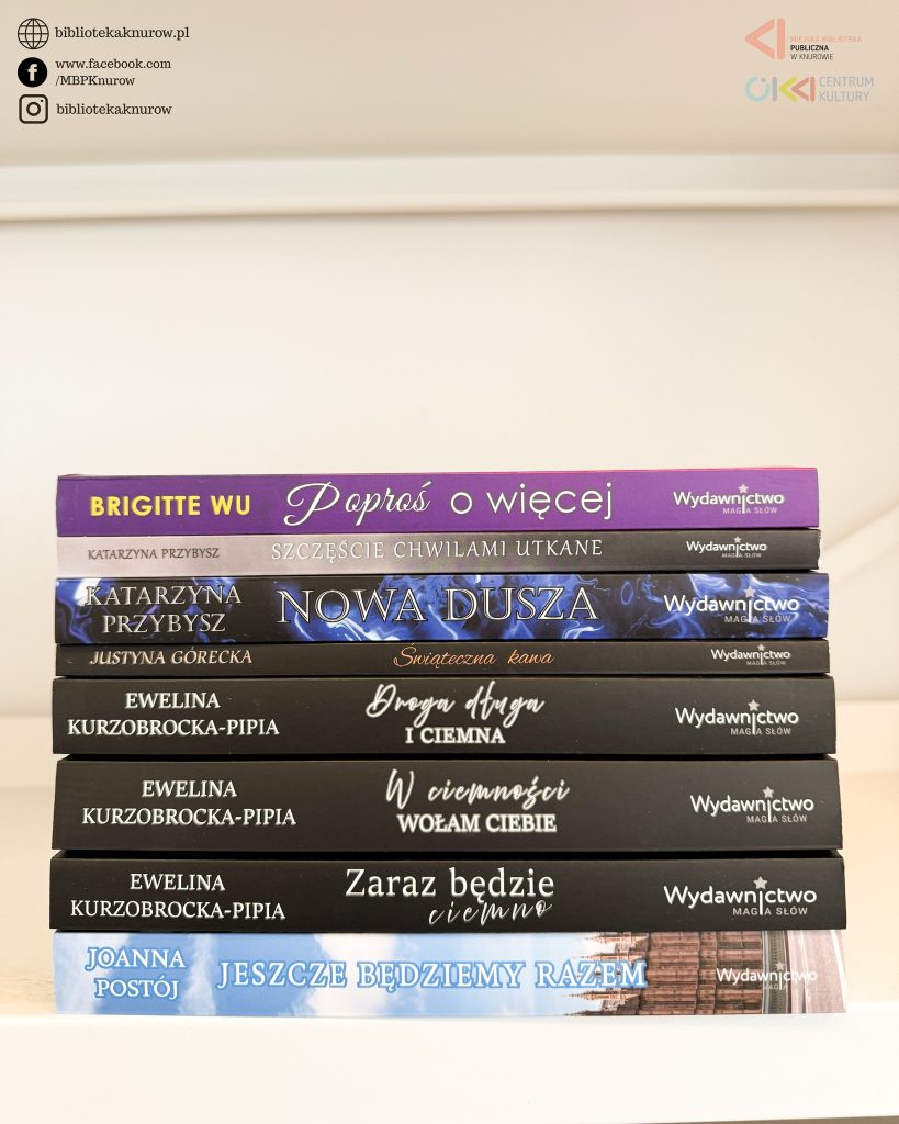 niedawno nasza Biblioteka wzięła udział w akcji dla BIBLIOTEK, KLUBÓW SENIORA, KÓŁ GOSPODYŃ WIEJSKICH wspieramy czytelnictwo, organizowanej przez Wydawnictwo Magia Słów. Z tej okazji, otrzymałyśmy wspaniałe książki, które niebawem będziecie mogli u nad wypożyczyć.